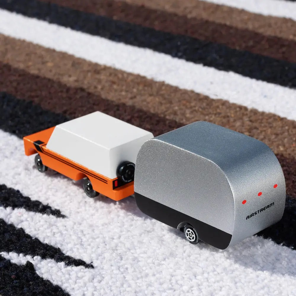 With an instantly recognizable shape and timeless aluminum exterior, the Airstream® is an absolute icon of American road culture. That’s exactly why we paired up with Airstream® to package their adventurous spirit into an adorable CANDYCAR® Camper! Compatible with all CANDYCAR® vehicles in the Camper Friendly collection. Materials & Info: Solid Beech Wood, water-based paint and clear urethane coat. ABS plastic rims, with plastic tires. Safety tested according to US CPSIA and European, Australian and New Zealand regulations. Dimensions: 4" L x 1.5" W x 1.75" H (10.2cm L x 3.8cm W x 4.5cm H) Weight: 5oz / 141g