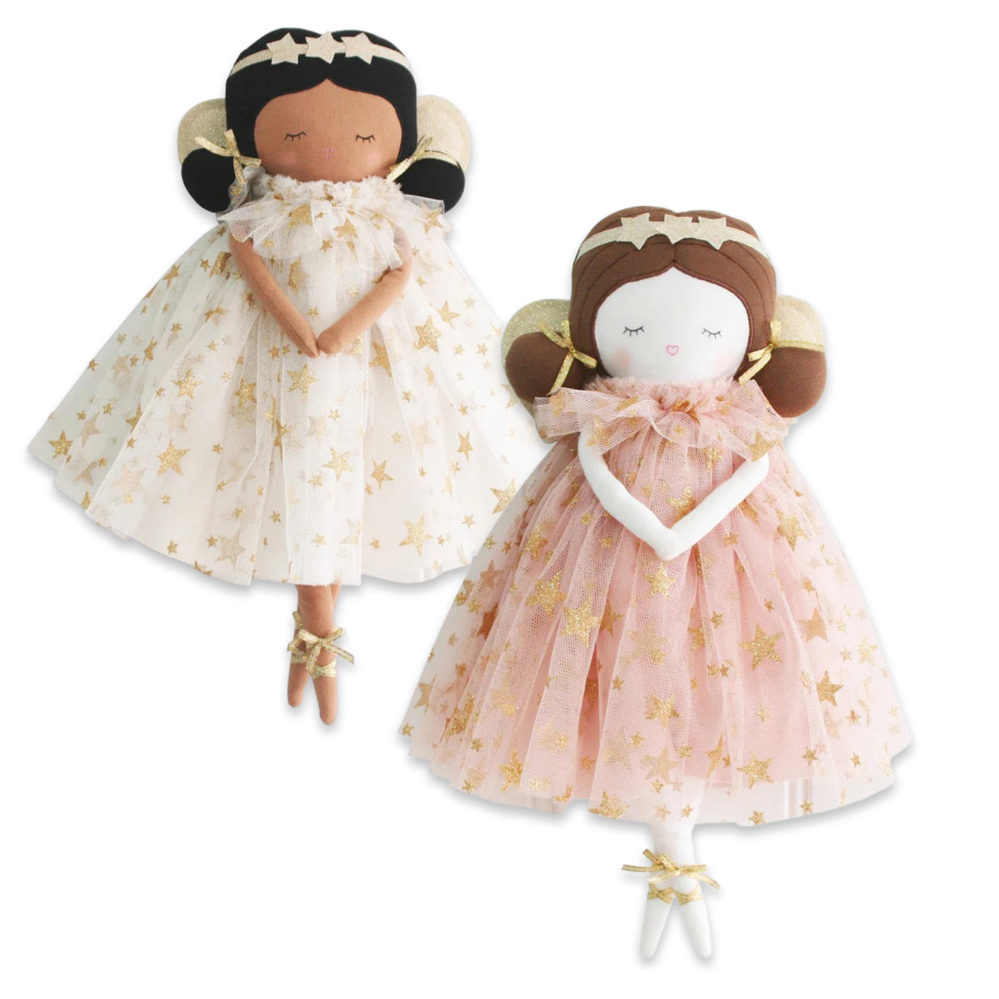- Soft pink and gold star tulle dress