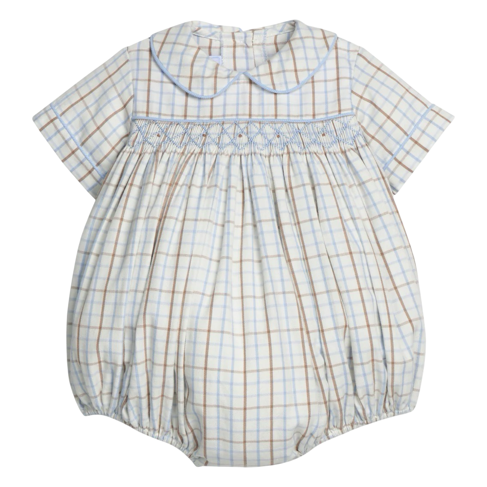 Perfect for family photos, the Winthrop collection is both elevated and timeless. Our hand-smocked Barrington Bubble features light blue smocking through the chest and light blue corduroy piping at the sleeves, chest, and peter pan collar. This heirloom-worthy one-piece is a wonderful addition to your little one's wardrobe.