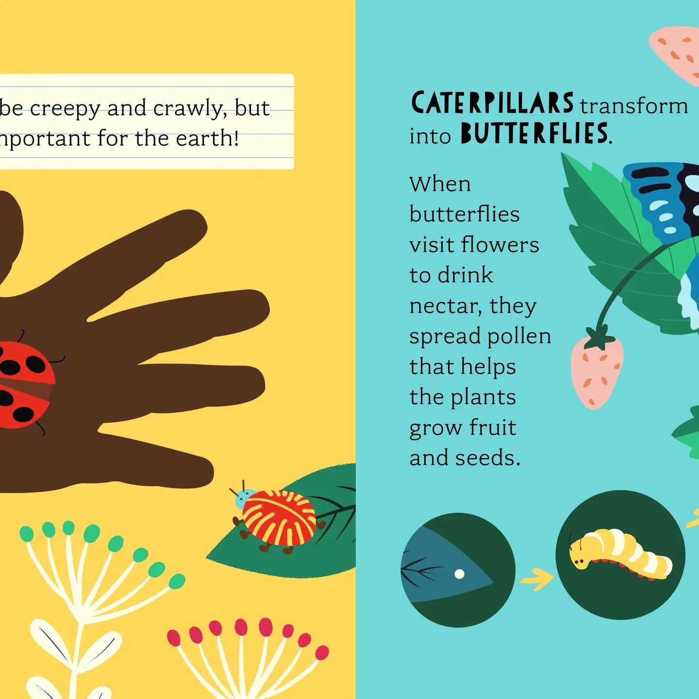 Rub-a-dub . . . BUGS! Books in the bathtub? Yes, please! While your little one scrubs off the day, let them lather on some science simultaneously! In this adorable bath book, kids will learn about insects and bugs in all shapes and sizes with amazing, color-changing illustrations. Just dip the pages in water (How could you not? You’re in the tub!) and watch insects, life-cycles, habitats, and more come to life before your very eyes. And what’s even more magical, when the book dries, the artwork disappears! Kids will beg to take the plunge again and again, practicing reading while learning about nature’s most interesting bugs on the pages of this squishy, vinyl bath book. And parents will love that it's easily cleaned with a soapy cloth, ready for repeat readings!