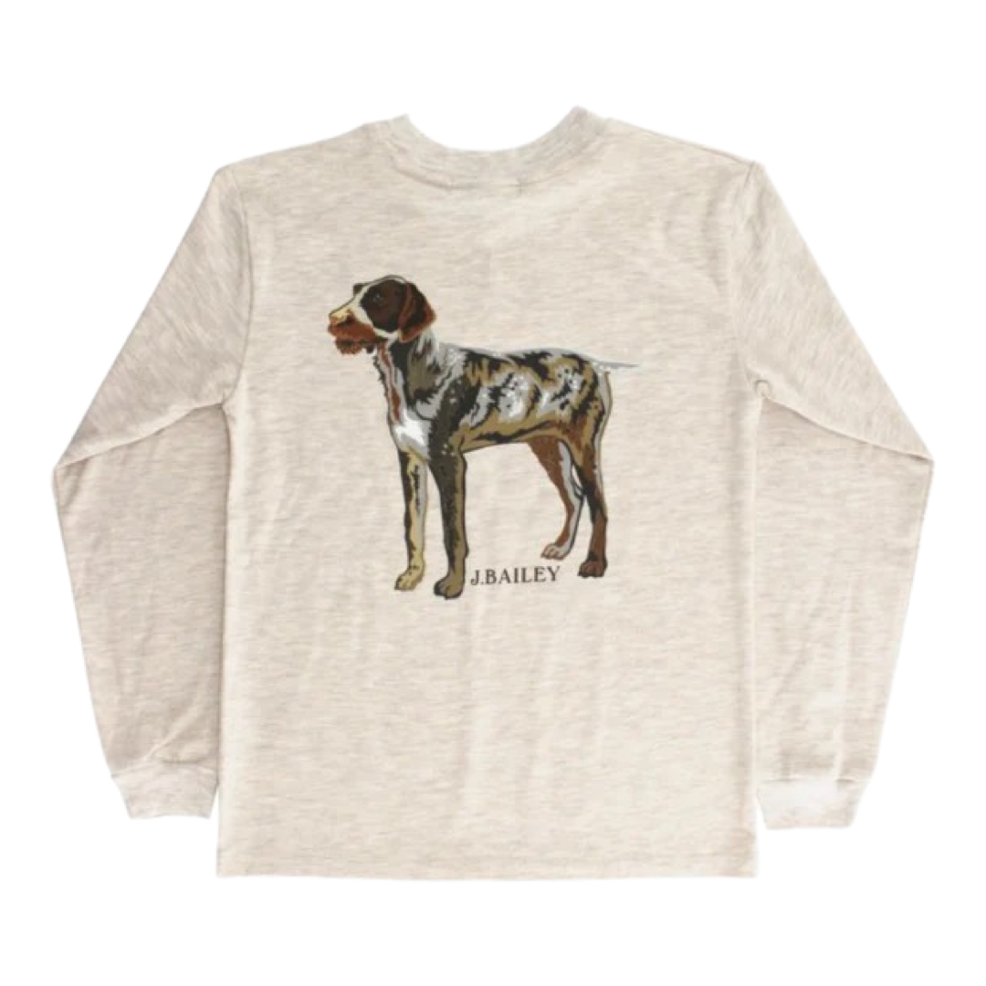 Bailey Boys Long Sleeve Tee with dog graphic on back and front pocket