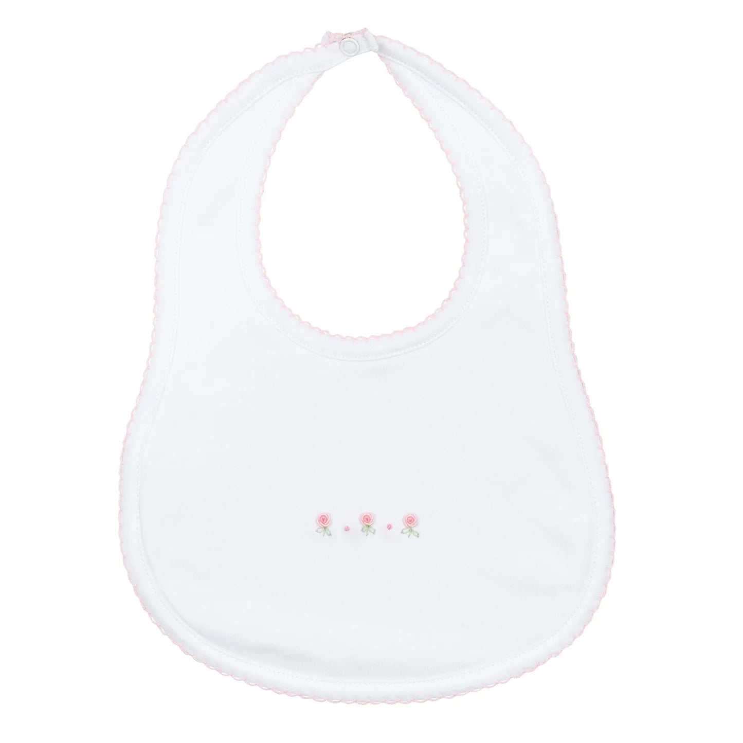 Keep your baby stylish and clean with the Juliette’s Classics Bib. This bib features hand-embroidered rosebuds on soft 100% Pima cotton, offering both functionality and elegance. Perfect for everyday use or special occasions, it also makes a charming baby shower gift.