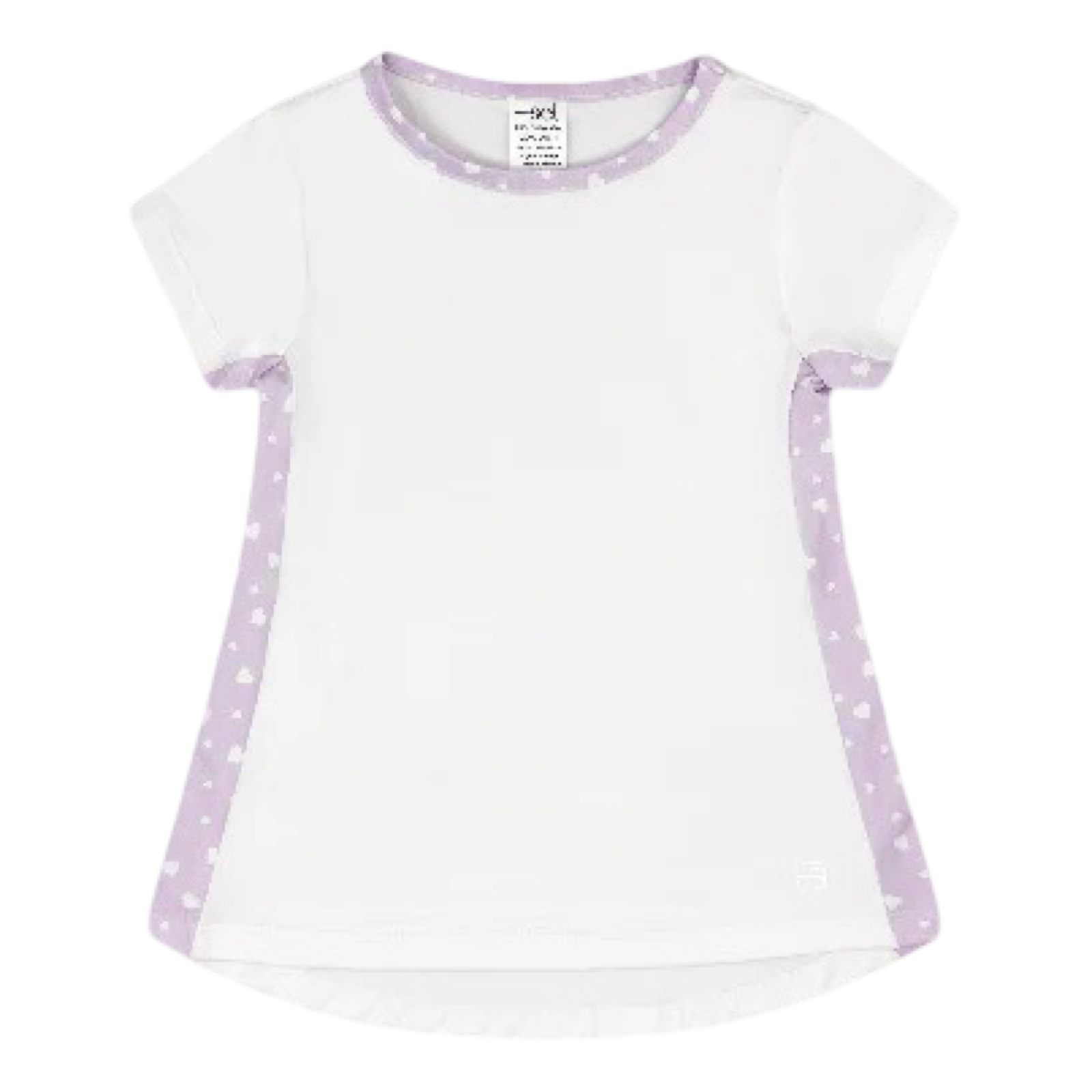 Our new Blair Top in Pure Coconut with Be Mine sides is perfect for your active girl. The athleisure fabric will keep her comfortable and cool. Complete the look with our shorts or skorts in Petal Purple