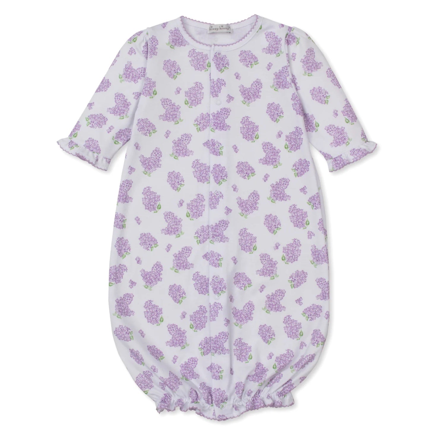 - Front snap closure; snaps convert gown to playsuit