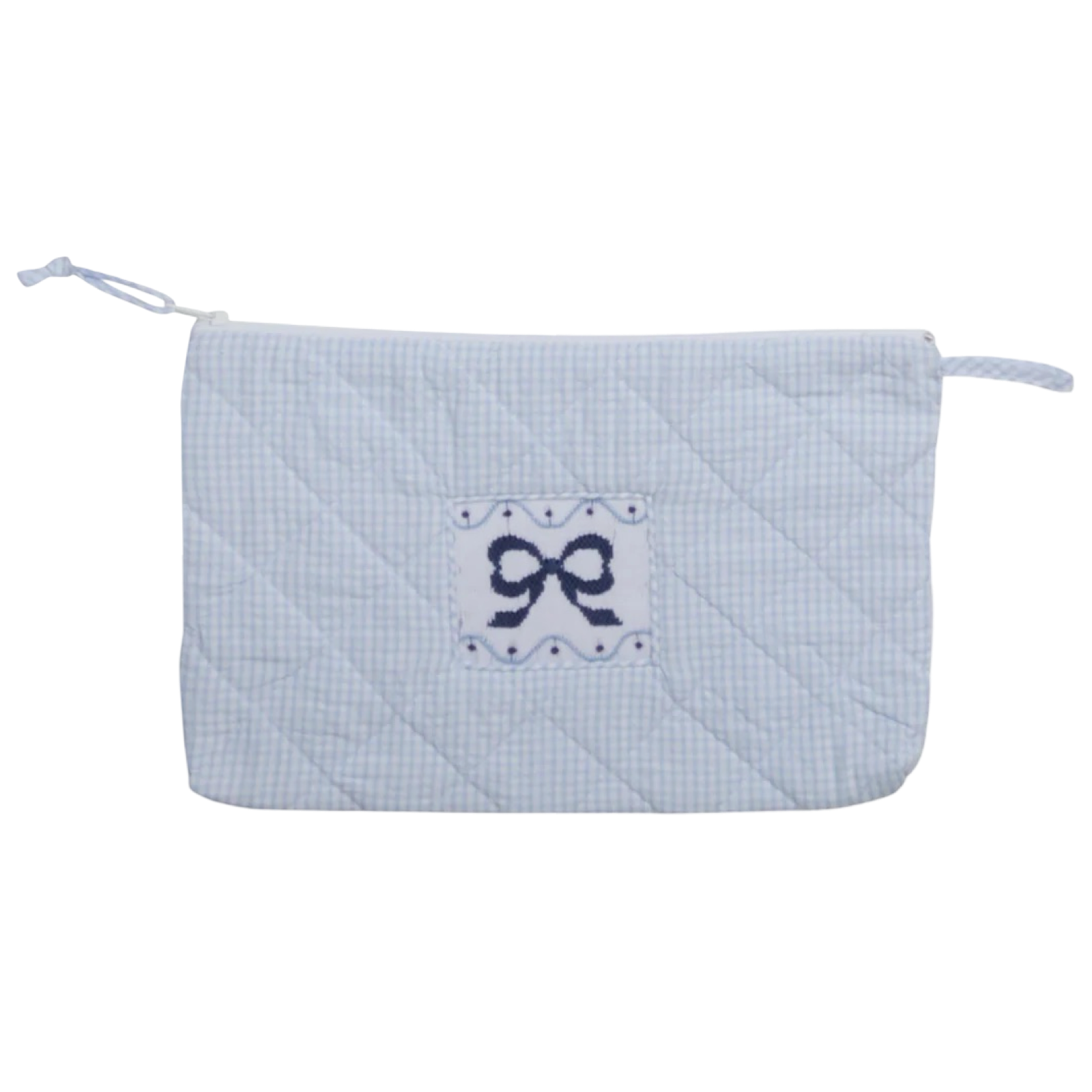Little English. From spending the night out to packing for a weekend trip, let them travel in style. Our smocked Bow is on Light Blue Seersucker and is perfect for girls on the go. This style is in the 1.5 in. diamond quilting pattern.