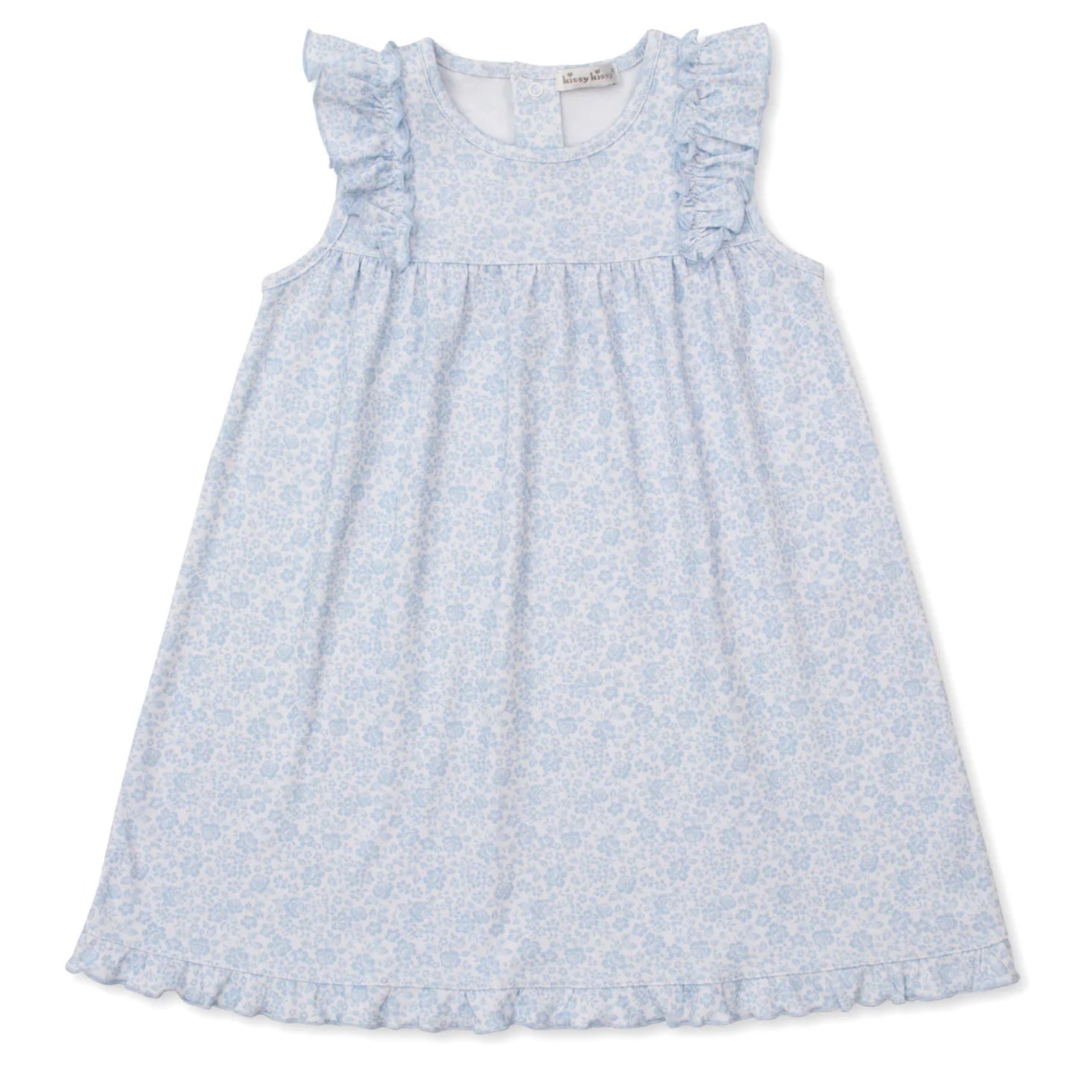 - Tiny and sweet light blue floral pattern this baby girl's dress set, complete with a diaper cover. Made from 100% Pima cotton for a soft and comfortable fit.