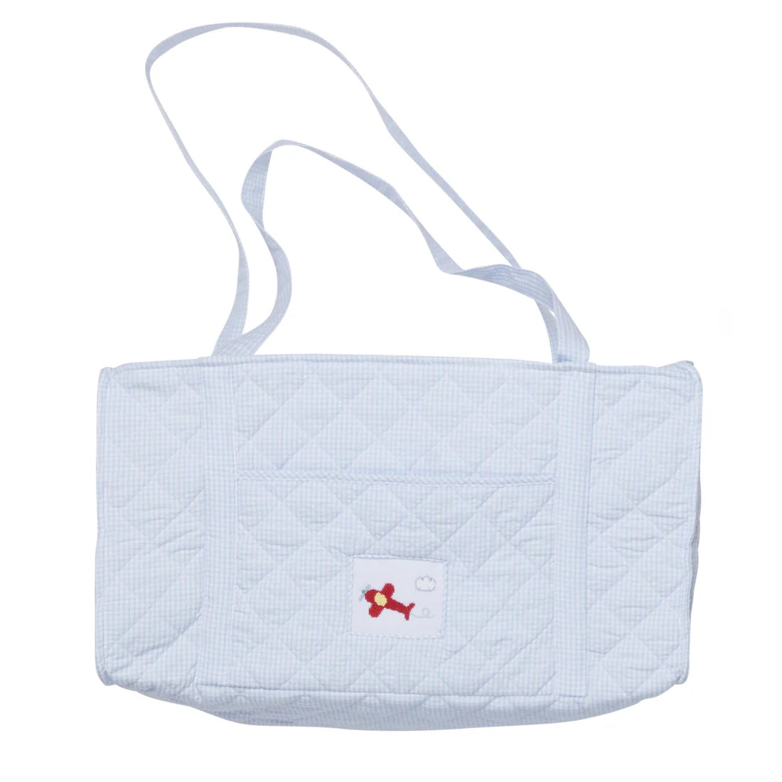 Little English. From spending the night out to packing for a weekend trip, let them travel in style. Our smocked blue sailboat is on Light Blue Seersucker and is perfect for boys on the go. This style is in the 1.5 in. diamond quilting pattern.