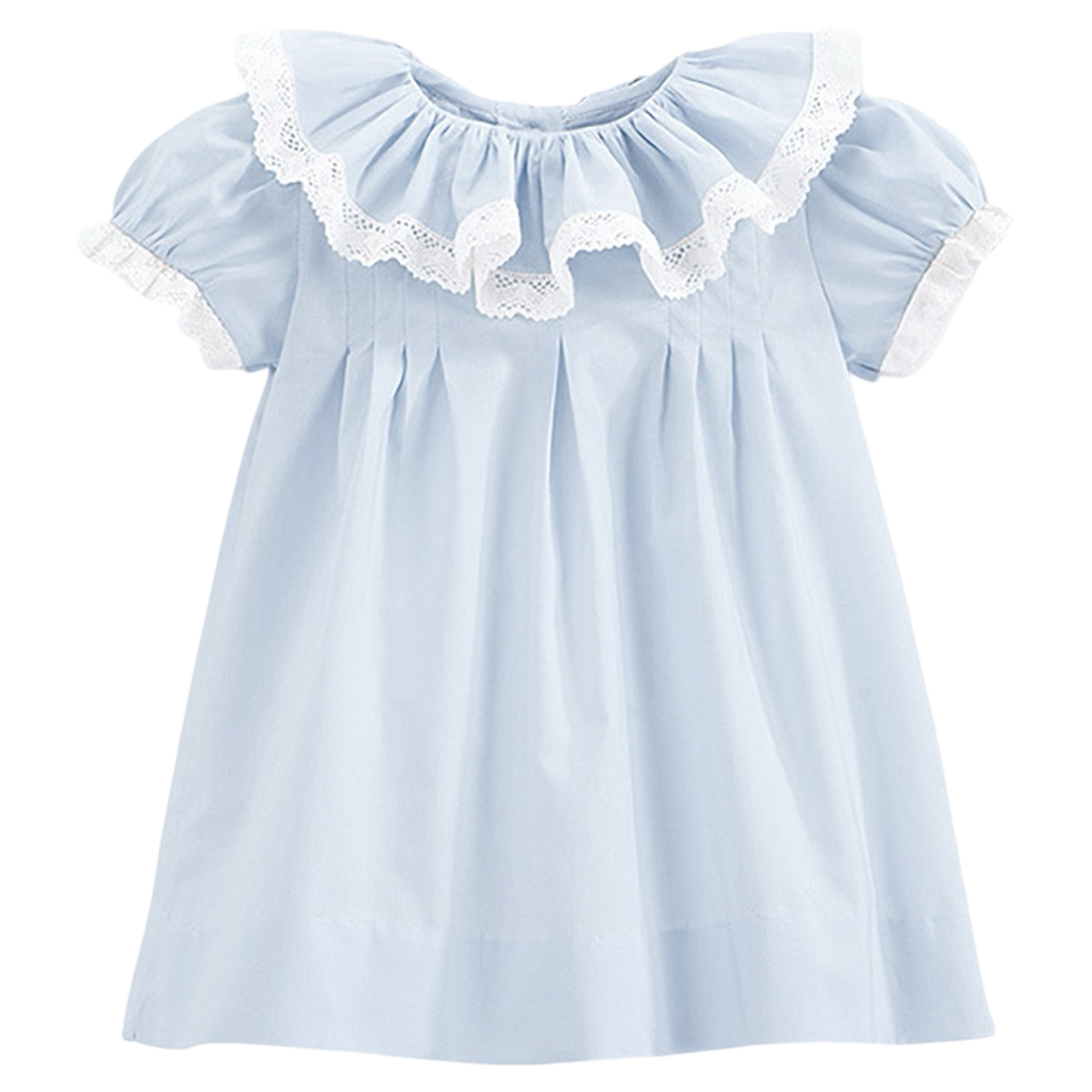 Simple elegance, graceful style; perfect for an array of functions, present and future. Our sweet dress is completed with a delicate lace detail. Fully lined. 100% cotton; dry clean.