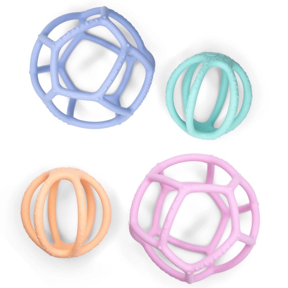 It's the combo you've been waiting for! A Sensory Ball and Fidget Ball combined into one fabulous 2 Pack. Free from any nasty chemicals, the Sensory Ball is made from food-grade silicone so babies can chew on the soft, safe surface to soothe their aching gums. The open frame design allows them to easily grab the Sensory Ball and bring it to their mouths when any toothy troubles arise. The Sensory Ball is also a great stress reliever, aiding children to focus their attention and self-regulate their emotions. It’s small, lightweight and discrete, so your child can slip into their pocket and keep it with them at all times. The Sensory Ball is super easy to clean; simply wash it in the dishwasher, steriliser or warm soapy water. Dimensions: 10cm x 10cm x 10cm