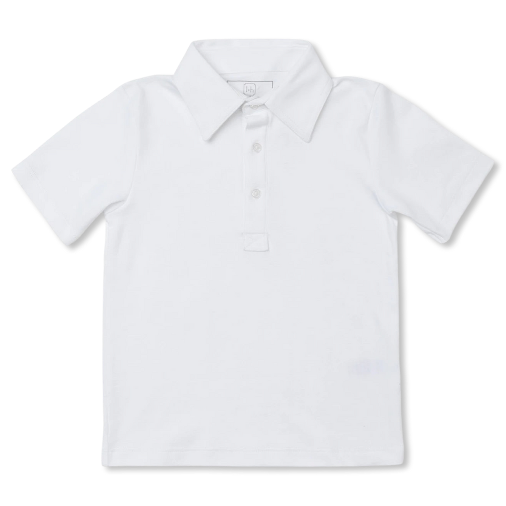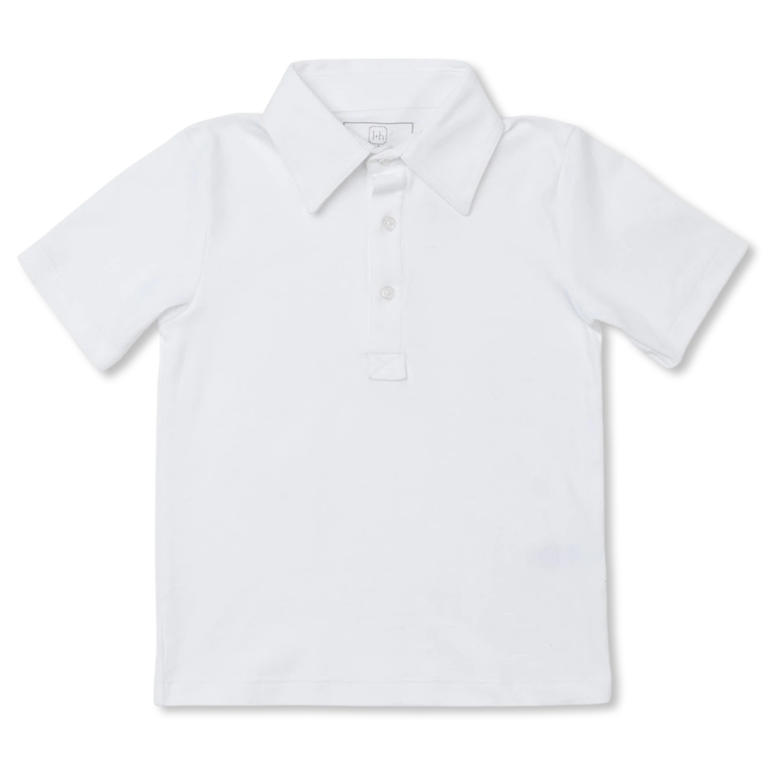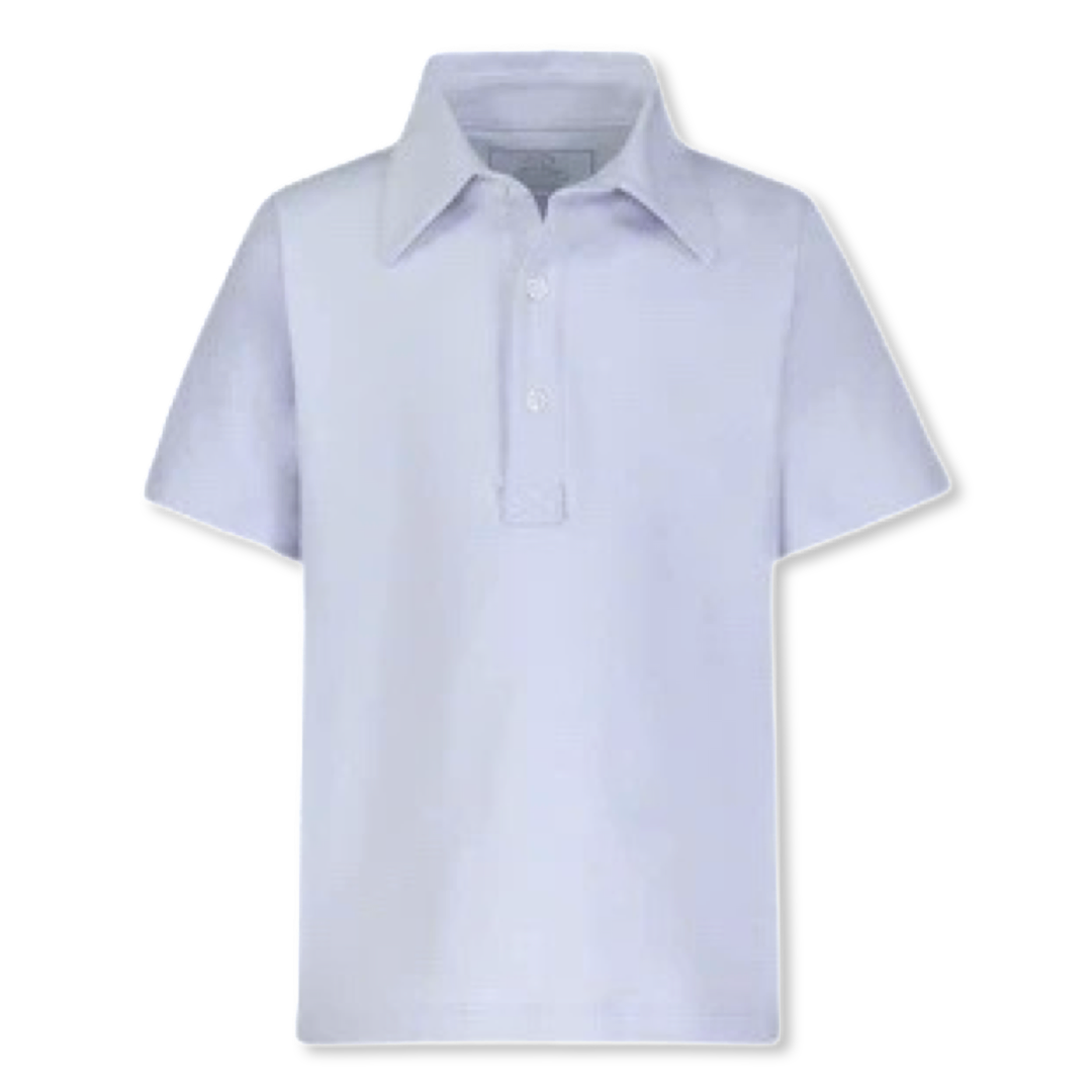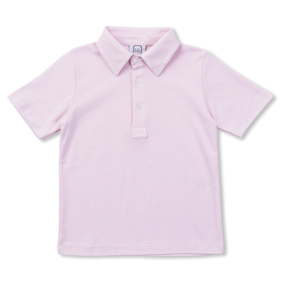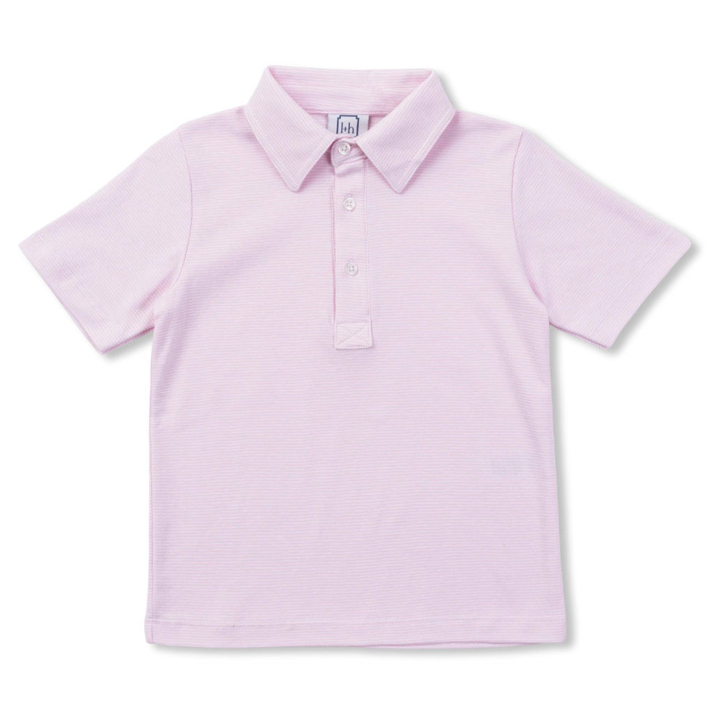 Boys' pima cotton golf shirt. Available in white, blue, light pink, and pink stripe