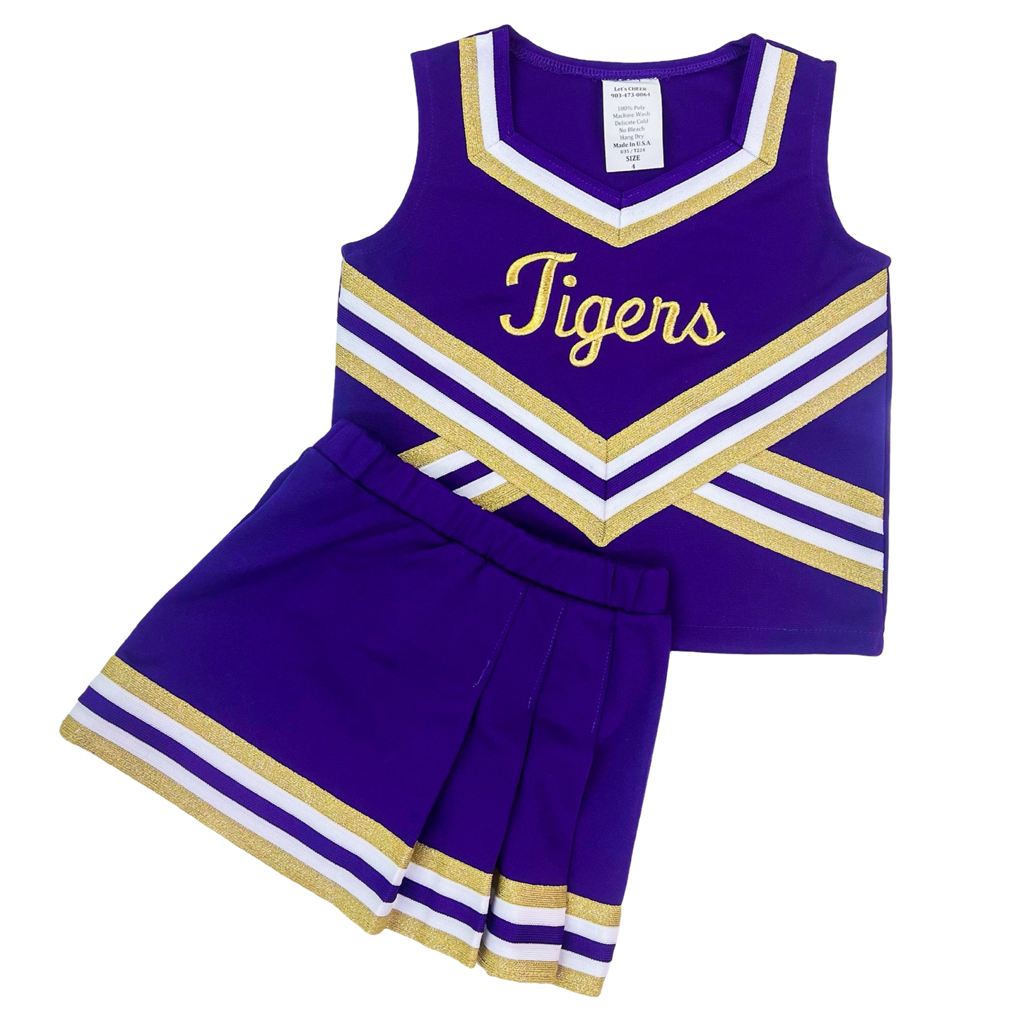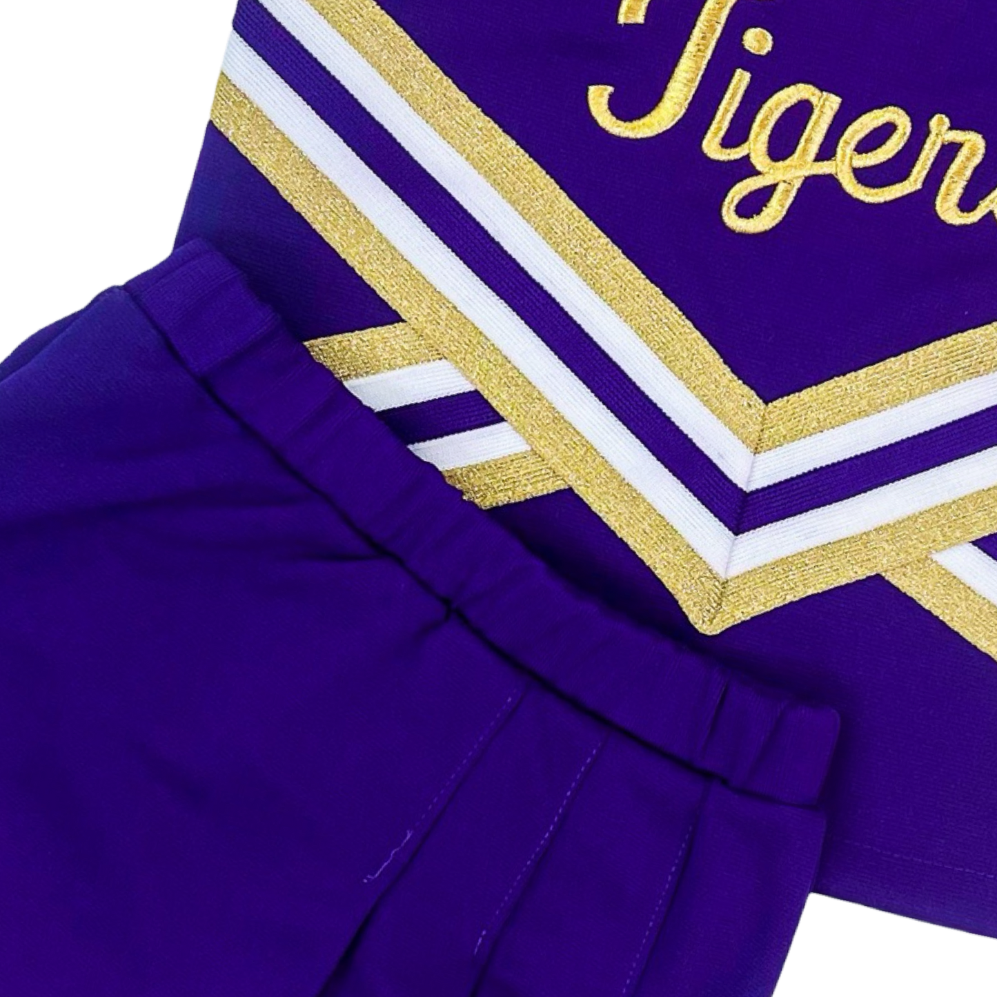 Purple & Metallic Gold 2 Piece Cheer Uniform . Runs small.