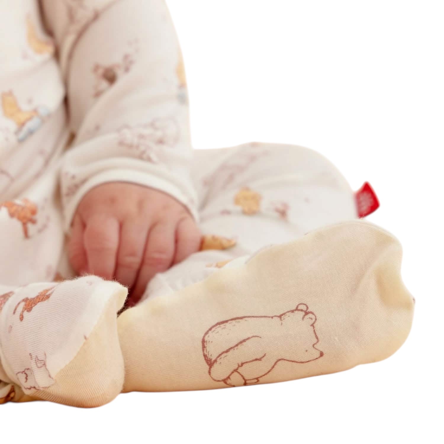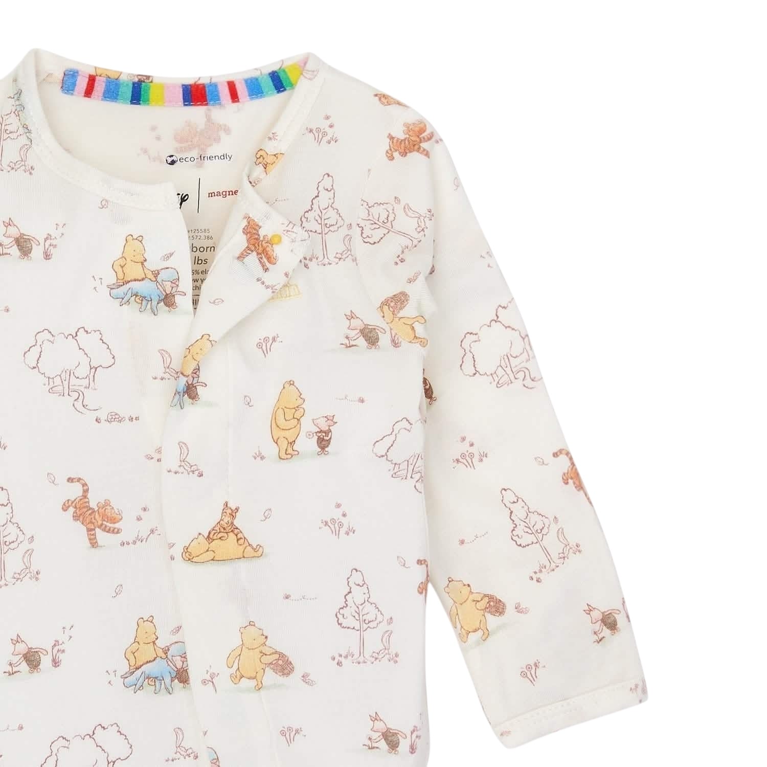 - Magnetic closures: magnets line the seam from the neck to upper thigh for sizes up to 0-3m & from neck to crotch for sizes 3-6m and up.