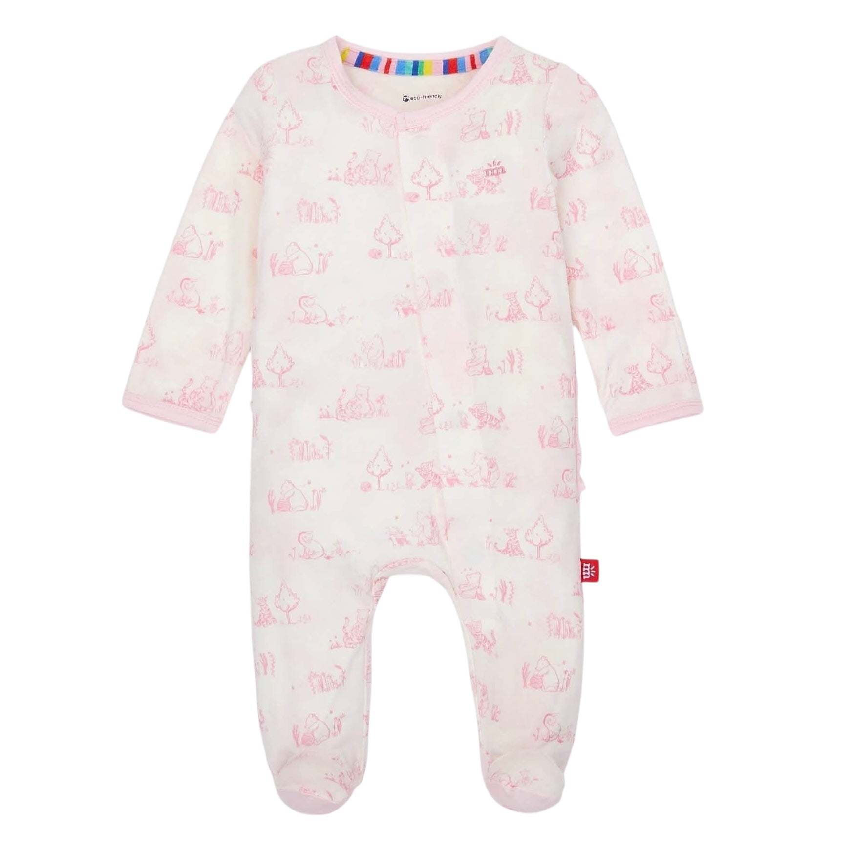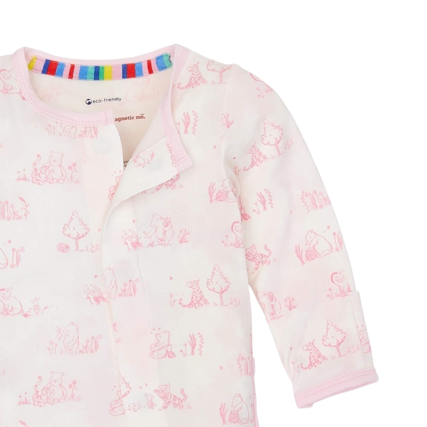 - Magnetic closures: magnets line the seam from the neck to upper thigh for sizes up to 0-3m & from neck to crotch for sizes 3-6m and up.