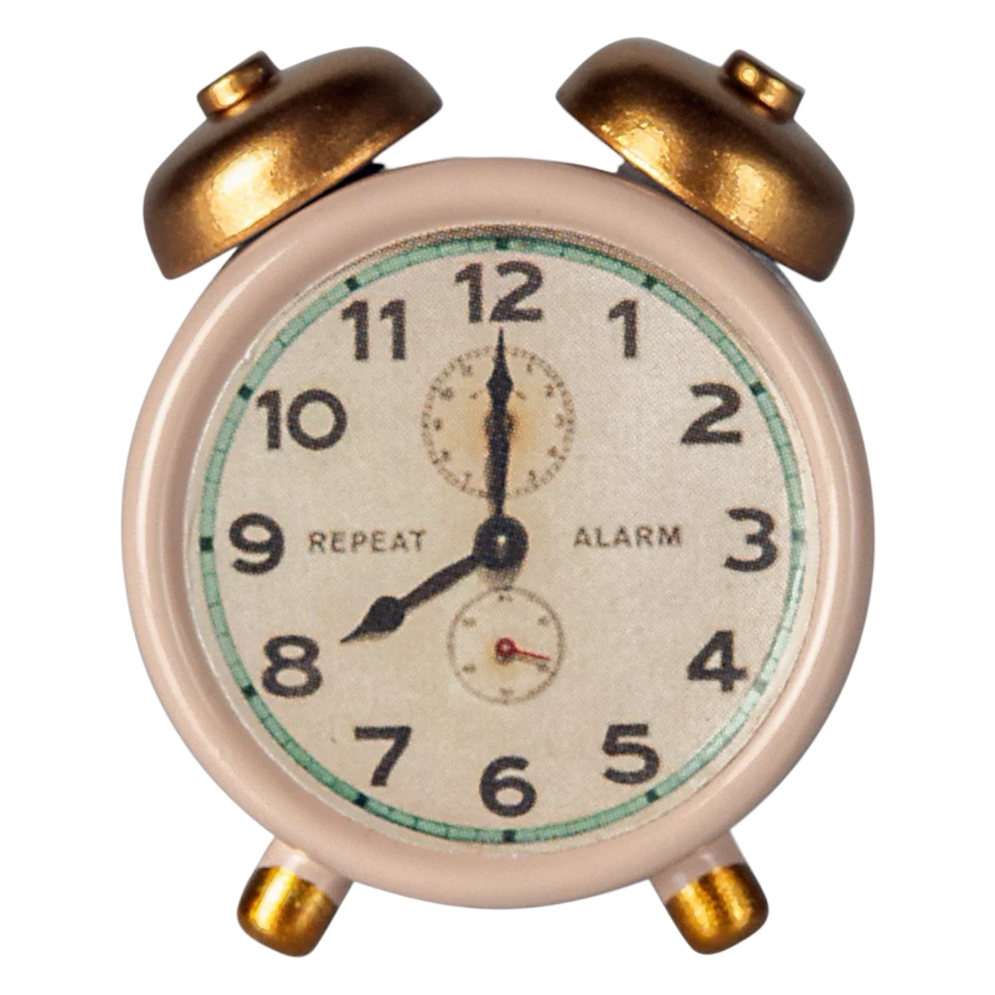 The bell rings and a new day of adventures starts. The small alarm clock is made in metal and with lots of small details.