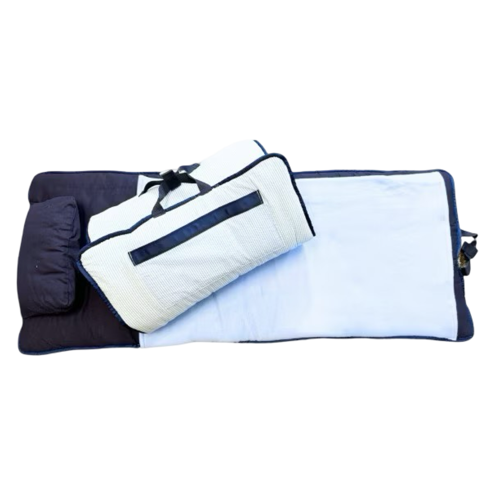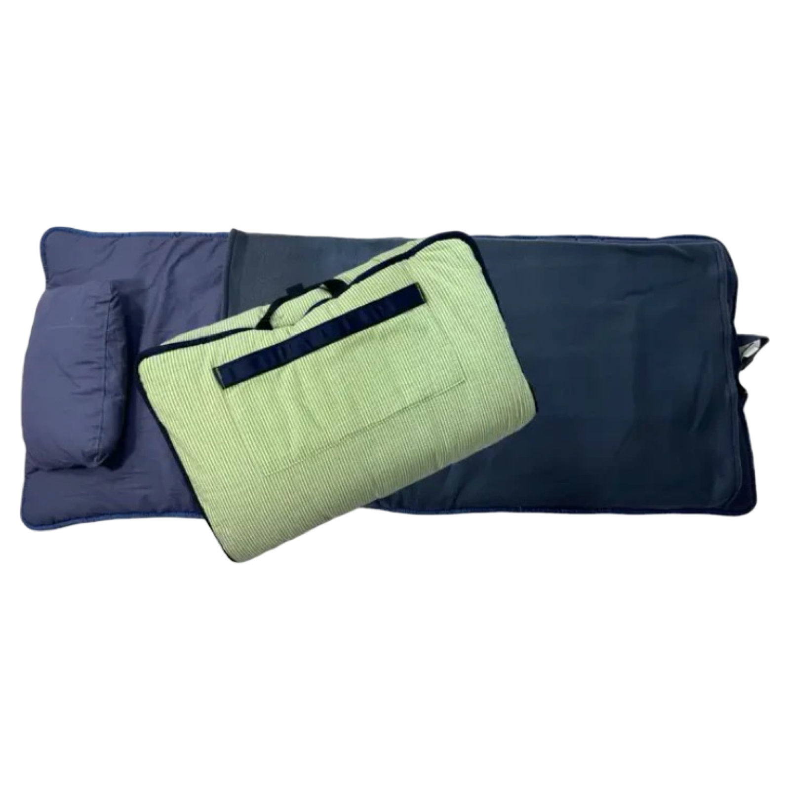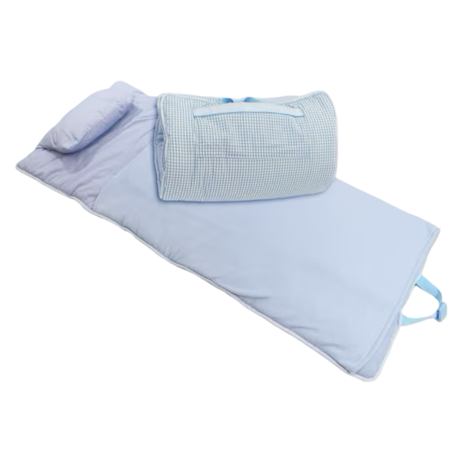 Easy to monogram on the outside pocket, the pillow, or anywhere on the blanket. Padded and lined with nylon and cotton with a ribbon-trimmed, soft, fleecy blanket. Easily rolls up and can be carried by the toddling toddlers on their way to Mother's Day Out, preschool, or to the corner for a time out. Be sure to see our seersucker nap rolls, too!