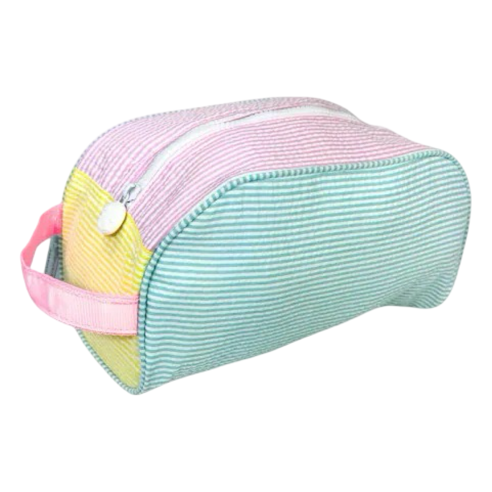 An updated version of our dopp kit, the travelers are a little bit smaller and a whole lot cuter! Perfect for travel anywhere - camp, slumber parties, vacations, the gym..... They make great gifts too!