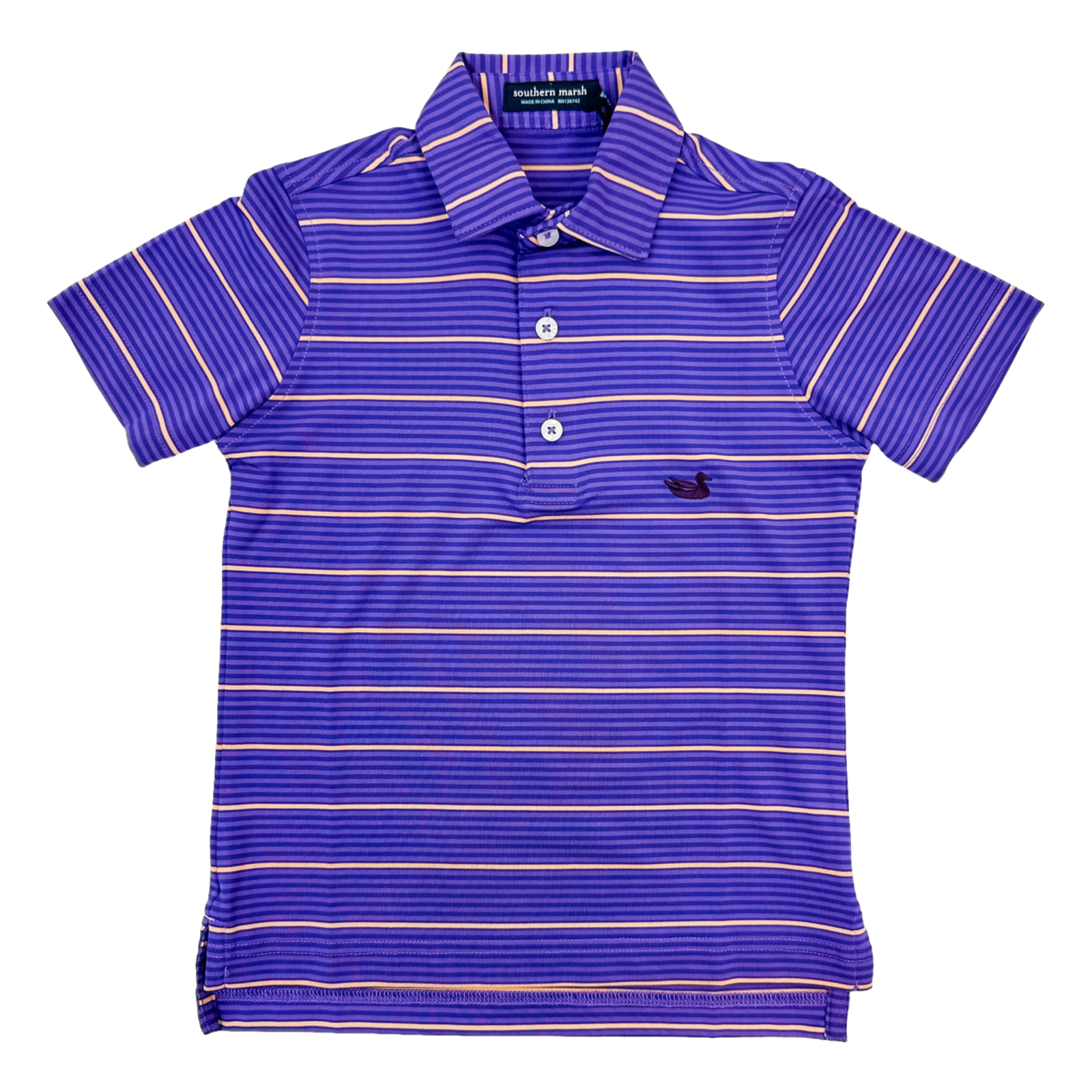 Varsity Performance Polo is crafted from a lightweight, moisture wicking material designed with a little stretch for a comfortable all day fit. Whether you're cheering on your team with the fam at the game or sporting your team's colors at school, this classic printed polo is the perfect shirt for the young sports enthusiast.