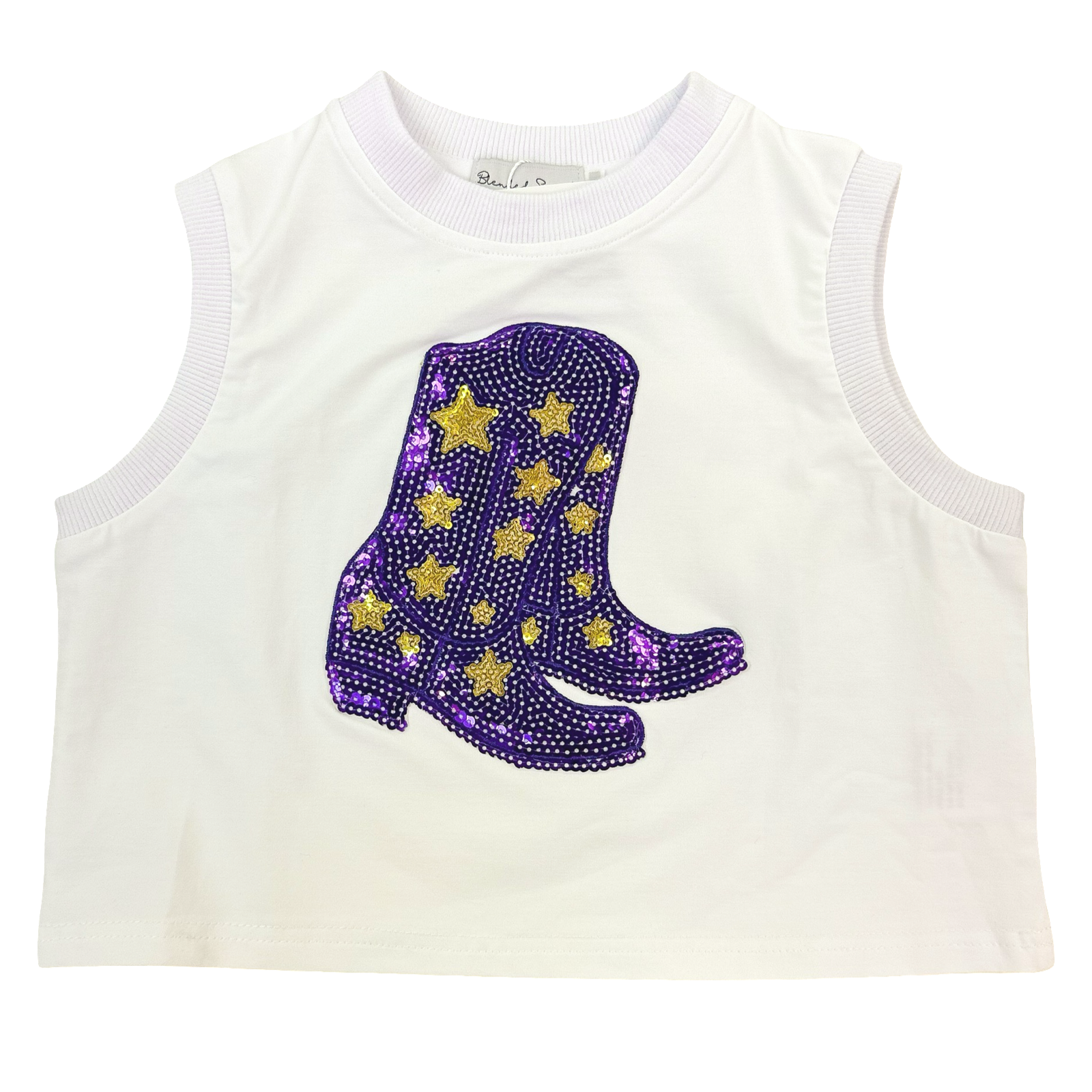 Blended Spirit Sequin Tee - Purple/Gold Boot