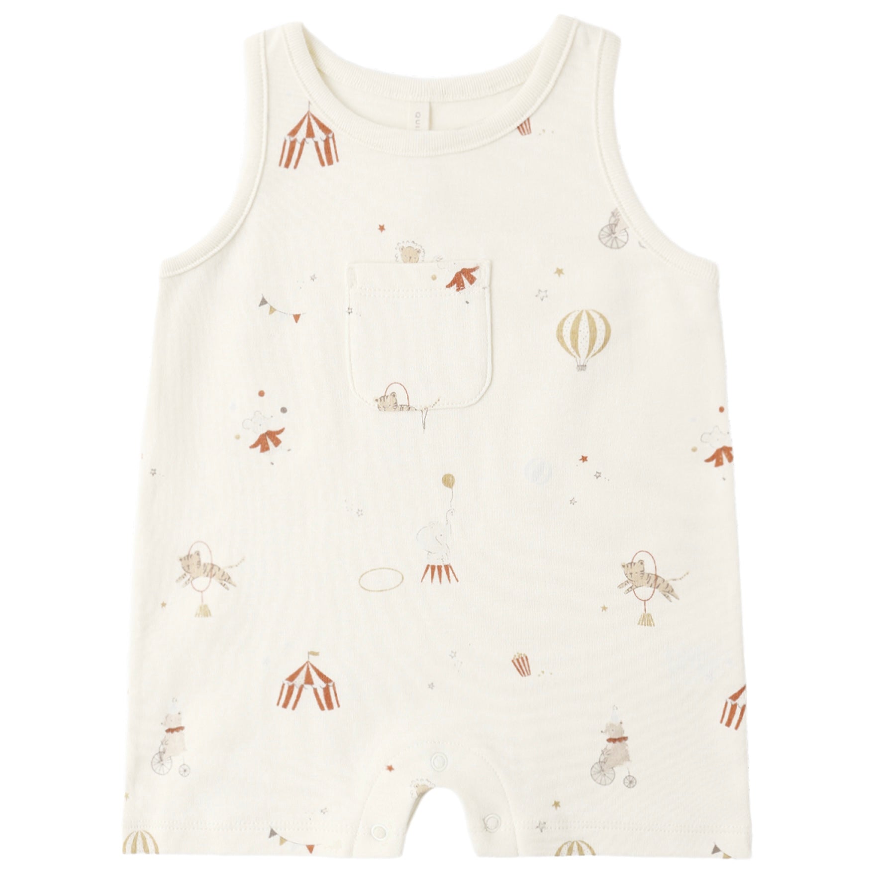 Perfect for warmer weather, our sleeveless one-piece is designed with a center pocket and bottom snaps for easy changes.