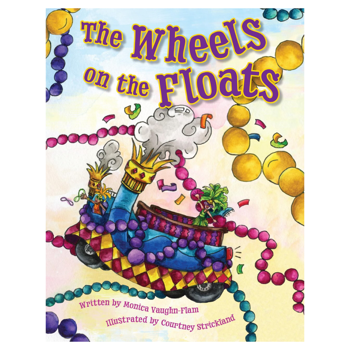 Sing along with the Carnival version of the favored nursery rhyme “The Wheels on the Bus.” This playful parody entertains with festive flair, as during Mardi Gras, it’s not a bus but a decorated float brimming with beads that delight the youngest parade-goers. Through engaging art and fun prose, children are transported to the parade route, enchanted by the magical sights and scenes of the season.