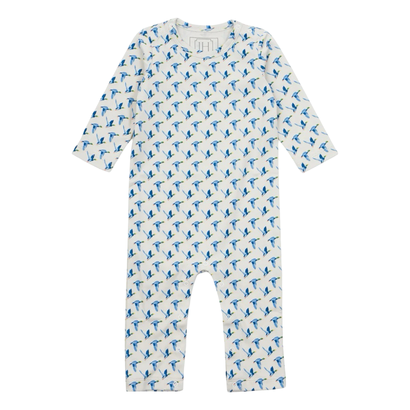 Pima cotton romper with snaps at the shoulder and snaps in the stride. Made from 100% Peruvian Cotton.
