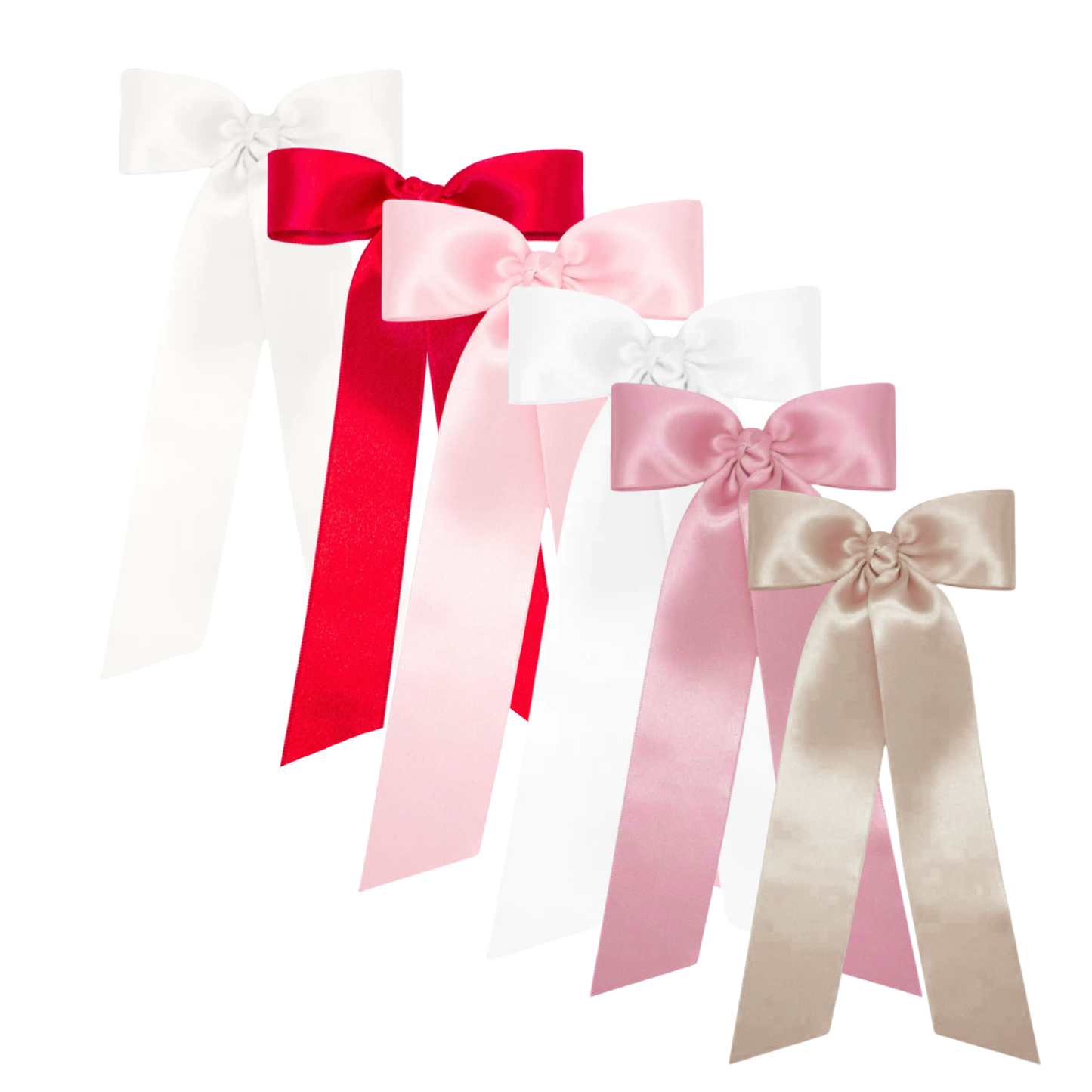 We're loving this hot new trend! Check out this adorable medium French satin hair bowtie with a knot wrap and 9 inch streamer tails. This bow is sure to stay in her hair all day with our patented WeeStay™ no-slip hair clip.